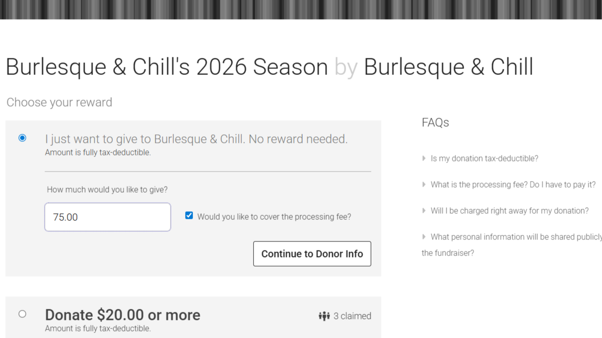 Step 2: Select “I just want to give to Burlesque & Chill. No reward needed.”